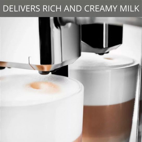 Вы можете использовать контейнер для молока в комплекте или просто опустить трубку капучинатора в пакет с молоком и приготовить одним касанием 2 капучино или латте.
