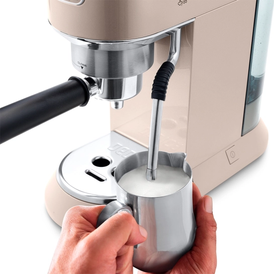 Фирменная коллекция Dedica представлена разнообразной современной бытовой техникой для кухни и покупка кофеварки DeLonghi EC 885 BG Dedica Arte может стать отличным ее пополнением. Вертикальная конструкция металлического корпуса (ширина всего 15 см) позволяет существенно сэкономить место, что будет полезным качеством в стесненном пространстве кухни, а сам стиль весьма выигрышно смотрится в любом интерьере.