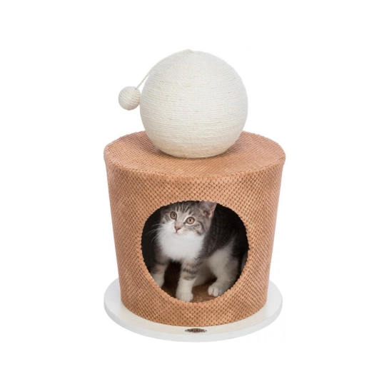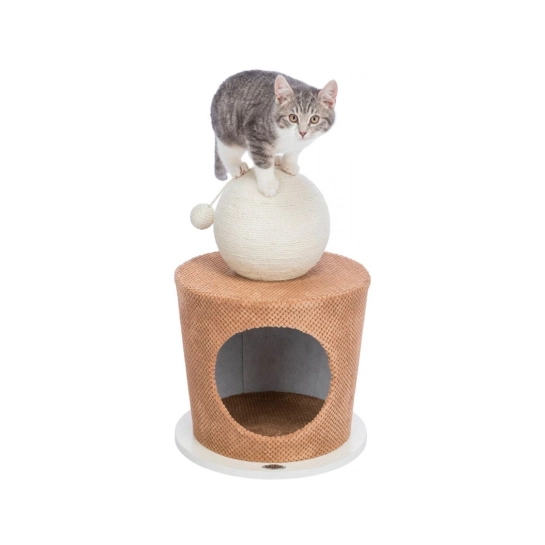 Описание Когтеточка-домик Trixie Пещера для кошек, с шариком, МДФ/джут/плюш, серо-коричневая, 36×50 см (44413)