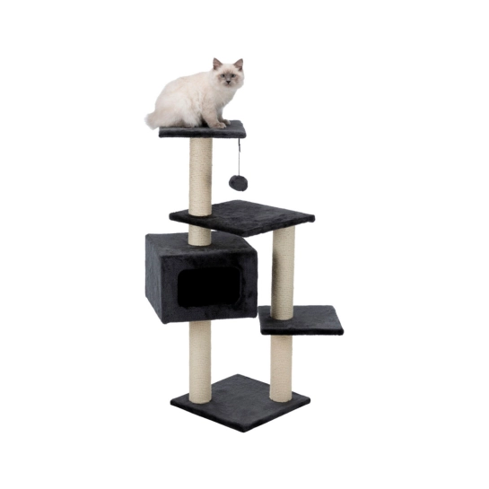 Характеристики для Когтеточка-комплекс Trixie Palamos для кошек с игрушкой на верёвке, сизаль/плюш, чёрная, 39×39×109 см (43787)