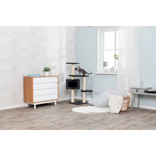 Описание Когтеточка-комплекс Trixie Palamos для кошек с игрушкой на верёвке, сизаль/плюш, чёрная, 39×39×109 см (43787)