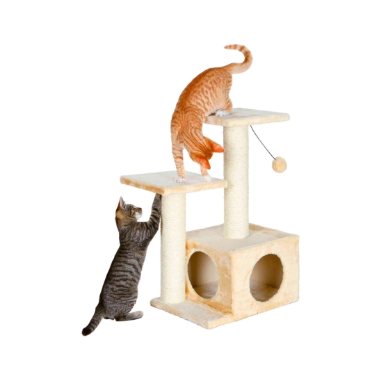Описание Когтеточка-комплекс Trixie Valencia для кошек, с игрушкой на верёвочке, сизаль/плюш, бежевая, 44×33×71 см (43771)