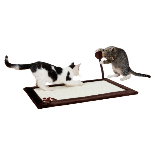 Когтеточка-коврик Trixie, для кошек, с мячиком на пружине, сизаль/плюш, коричневый, 70×45 см (4323)