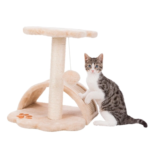Описание Когтеточка Trixie Junior Vitoria для кошек, с игрушкой на верёвочке, сизаль/плюш, бежевая, 36×36×43 см (43751)