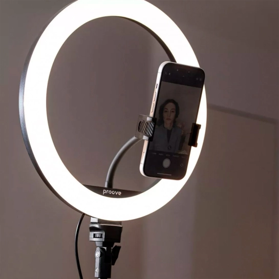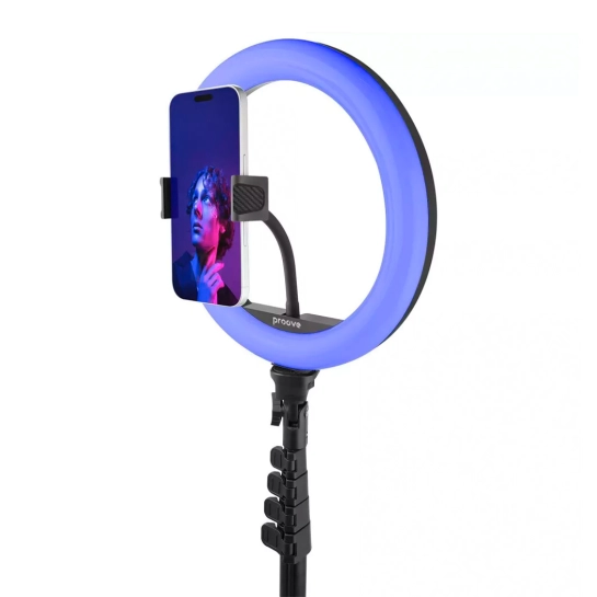 Proove Halo предлагает 17 режимов освещения, которые можно выбрать в зависимости от ваших потребностей, а также регулировку яркости для создания идеального освещения. Смартфон легко размещается в центре светодиодного кольца для создания качественных кадров. В комплекте предусмотрен пульт дистанционного управления, обеспечивающий максимальное удобство использования.