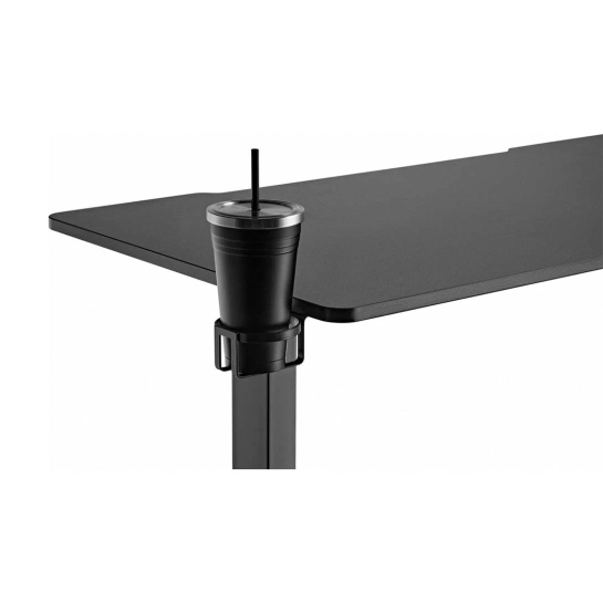 Поверхность стола выполнена в особом оформлении и имеет комфортное движение мыши покрытие. Также для большего комфорта стол оснащен удобным подстаканником и держателем для наушников.
