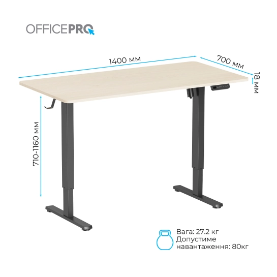 Характеристики для Компьютерный стол с регулировкой высоты OfficePro ODE1470LWB