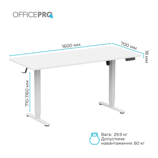 Описание Компьютерный стол с регулировкой высоты OfficePro ODE1670W