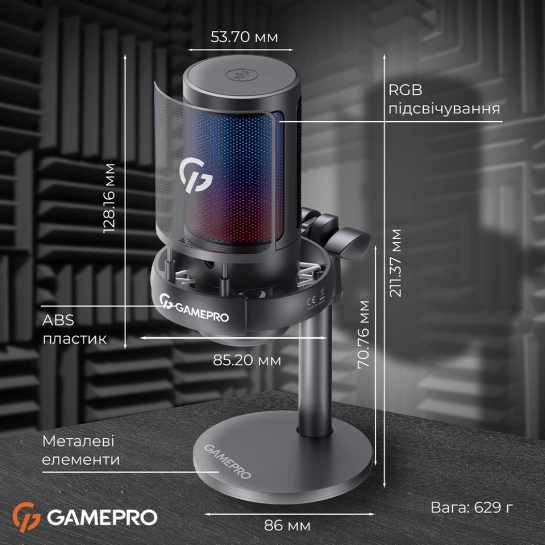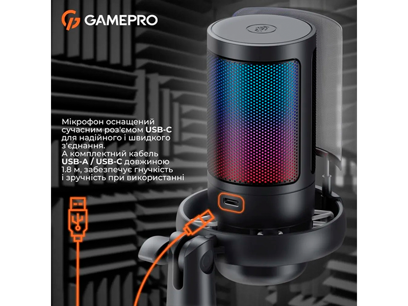 GamePro UGM105 - это отличный выбор для стриминга, потоковых трансляций, вокала, озвучивания, подкастов или интервью. Он сочетает профессиональное качество звука с ярким дизайном благодаря RGB-подсветке, которая придаст уникальности вашему рабочему пространству.
