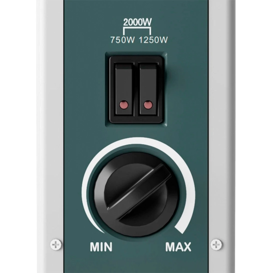 Olimpia Splendid CALEO METAL равномерно нагревает пространство радиусом 60 м3 до нужной температуры. Первый уровень нагрева – 750 Вт, второй – 1250 Вт и максимальная мощность – до 2000 Вт. Все уровни удобно регулируются механически до точной температуры. Кроме того, комнатный термостат поддерживает температуру и оптимизирует потребление.