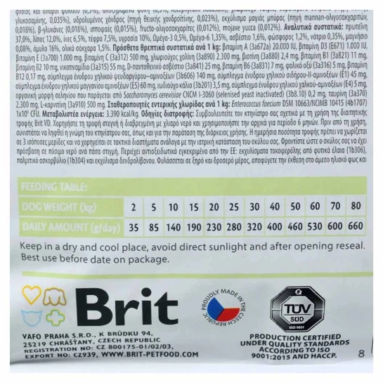 Способ применения: Начальный период кормления: Корм Brit VD Diabetes Dog использовать в течение периода до 6 месяцев. Ежедневное количество корма нужно разделить на 3 равные порции и давать через соответствующие промежутки времени в зависимости от состояния здоровья вашей собаки. Регулярные проверки уровня глюкозы в крови необходимы для получения оптимальной дозы инсулина. Не кормите собаку любым другим кормом для домашних животных или продуктами питания для человека и закусками.