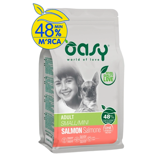 Корм для собак OASY OAP ADULT Small/Mini для взрослых собак мелких и миниатюрных пород, с лососем, 0,8 кг (8053017348339)