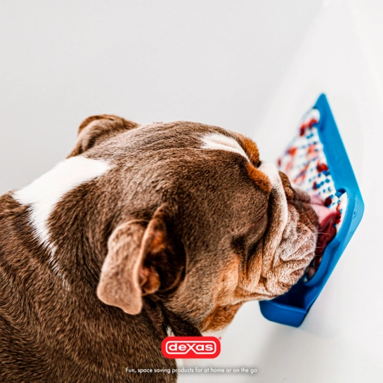 Коврик Dexas Snack&Distract помогает успокоить питомца и способствует выработке эндорфинов («гормонов счастья») во время слизывания лакомства.