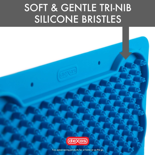 Коврик для слизывания лакомств Dexas Snack&Distract с силиконовыми утроенными на кончиках выступами помогает собакам и кошкам справляться с тревогой и скукой, обеспечивает активный досуг и отвлекает питомца во время стрессовых ситуаций (визит к ветеринару, купание, стрижка когтей).