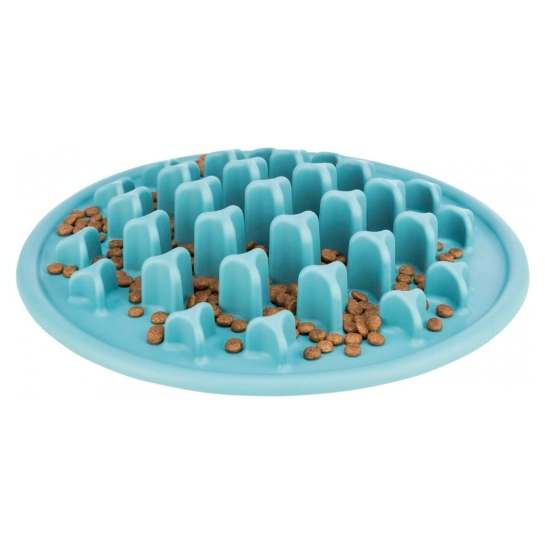 Медленное поедание корма является отличным способом предупредить у вашего любимца переедание и вызванные им проблемы – чрезмерное газообразование, ожирение. Прекрасным помощником для организации процесса медленного поедания станет этот коврик от Trixie.