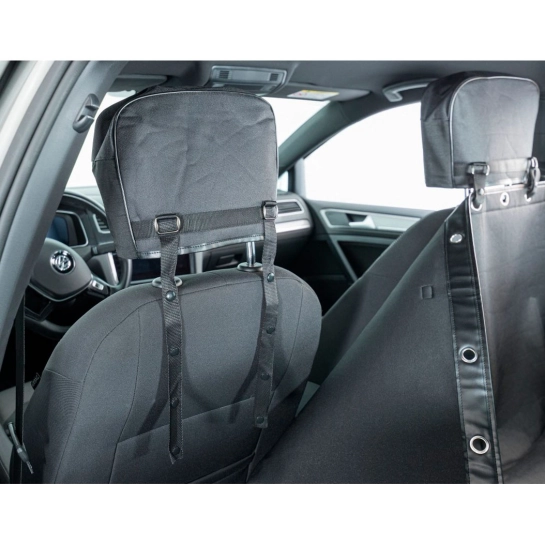 Для защиты сидения автомобиля, в котором транспортируется собака, от загрязнений, повреждений и остатков шерсти, используется коврик защитный в авто нейлон черный 1,45*1,60м, представленный известным немецким производителем зоотоваров Трикси.