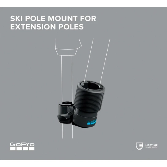 Для обеспечения плотного прилегания к вашему снаряжению в комплект входят пять различных прокладок диаметром от 14 до 22 мм. Поэтому можно не беспокоиться о потере камеры в экстремальных условиях. Специальные аксессуары совместимы с большинством лыжных палок. Универсальная конструкция также позволяет снимать максимально разнообразные кадры, а на аксессуар предоставляется пожизненная официальная гарантия GoPro.