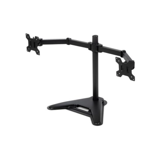 Поворотно-наклонный кронштейн для монитора с вариантом установки на стол. Поддерживает мониторы с диагональю от 10 до 32 дюймов, включая размеры: 10", 11", 12", 13", 14", 15", 15.4", 15.6", 16", 17", 18", 18.5", 19", 20", 20.7", 21", 21.5", 21.6", 22", 23", 23.6", 23.8", 24", 25", 26", 27", 27.5", 28", 28.5", 29", 30", 31.5", и 32". Поддерживаемые стандарты VESA: 75 x 75 мм и 100 x 100 мм. Максимальная нагрузка - 10 кг на каждый из кронштейнов. Регулировка угла наклона - ±45°, поворота - 180°, вращение - 360°. Изготовлен из металла. В комплект входят два кронштейна, монтажный комплект и инструкция. Цвет - черный.