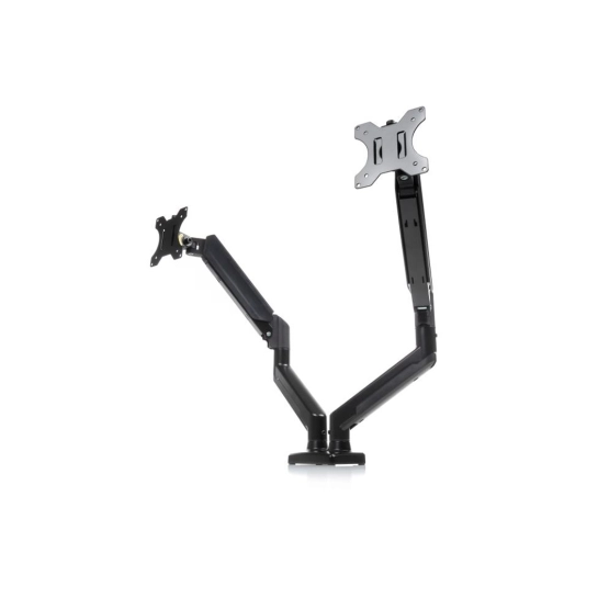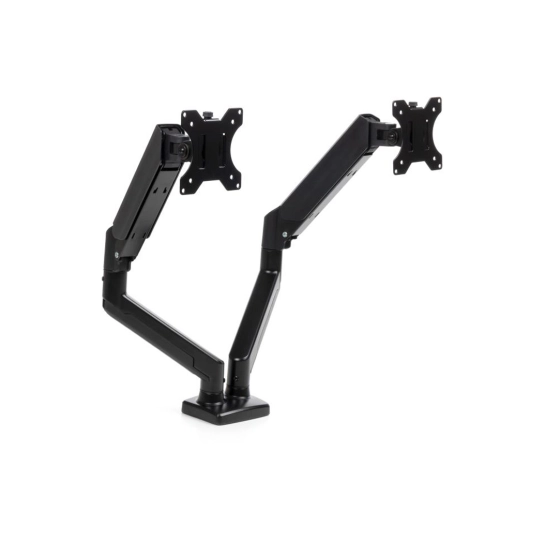 Поворотно-наклонный кронштейн для монитора с вариантом установки на стол. Поддерживает мониторы с диагональю от 10 до 32 дюймов, включая размеры: 10", 11", 12", 13", 14", 15", 15.4", 15.6", 16", 17", 18", 18.5", 19", 20", 20.7", 21", 21.5", 21.6", 22", 23", 23.6", 23.8", 24", 25", 26", 27", 27.5", 28", 28.5", 29", 30", 31.5", и 32". Поддерживаемые стандарты VESA: 75 x 75 мм и 100 x 100 мм. Максимальная нагрузка - 10 кг на каждый из кронштейнов. Регулировка угла наклона - ±45°, поворота - 180°, вращение - 360°. Изготовлен из металла. В комплект входят два кронштейна, монтажный комплект и инструкция. Цвет - черный.
