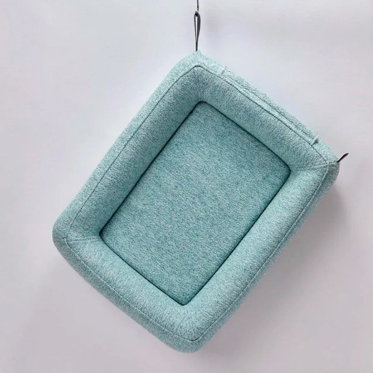 - Благодаря прочной ткани лежак выдерживает активные движения — когти и перекаты не повредят поверхность.