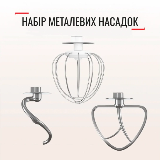 Эта кухонная машина – ваш универсальный помощник, которому по силам любые блюда. Благодаря трем насадкам, приготовление ароматного хлеба с корочкой, сочной пиццы или пышных пирожных стало еще проще.