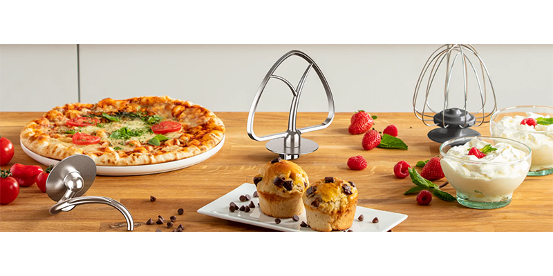 Набор из трех металлических насадок, входящих в комплект кухонной машины, открывает безграничные возможности в мире выпечки и десертов. Готовьте пышные пироги, нежные пирожные, воздушные суфле и многое другое!