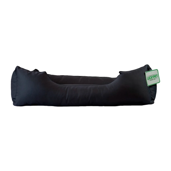 Борта лежака — высокие, с фиксированными углами. Наполнитель — тот же холлофайбер: лёгкий, гипоаллергенный, износостойкий материал средней плотности, обеспечивающий долговечность и комфорт. Сам матрас двусторонний, что продлевает срок службы изделия.