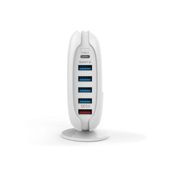 Описание Сетевое зарядное устройство Marakoko Power Series Quick Charge Type-C Hub to 6-USB 60W White