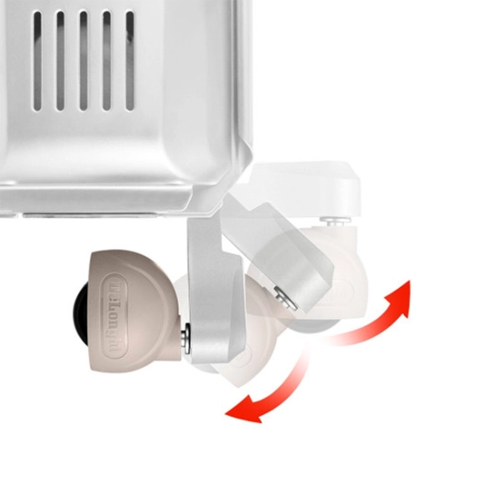 Устройство оснащено 24-часовым таймером, который позволяет заранее задать график нагрева. Простые в использовании кнопки регулировки позволяют выбрать нужную температуру и один из трех уровней мощности: 800, 1000 или 1800 Вт. Технология Venturi, использующая специальные ребра, ускоряет движение воздуха на выходе на 40% и поднимает его температуру на 10°C по сравнению с традиционными радиаторами, что способствует быстрому и равномерному прогреву помещения. Радиатор оснащен разнонаправленными колесиками для легкого перемещения, что делает его удобным в использовании.