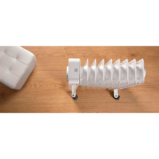 2000 ватт мощности и запатентованная конструкция из 18 отверстий в каждой пластине этого масляного обогревателя в считанные секунды обеспечат тепло. Может эффективно обогревать помещение площадью до 15 м2.