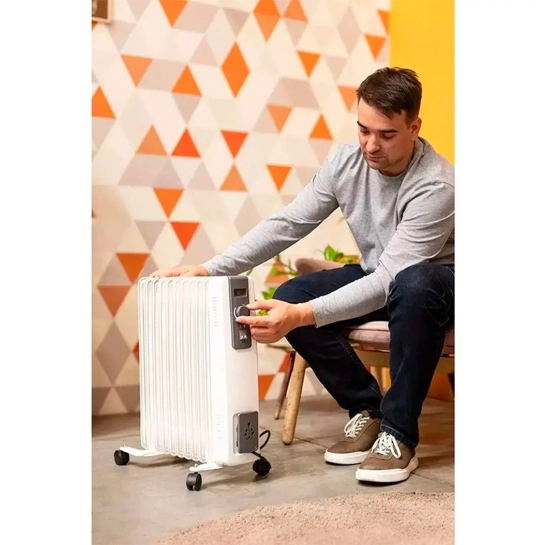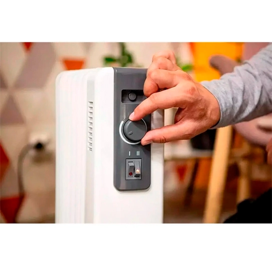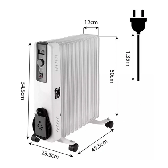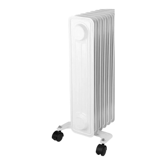 Масляный обогреватель 2500 Вт с 11 ребрами 90-153 от NEO TOOLS - это эффективный нагревательный прибор, идеально подходящий для обогрева небольших помещений. Оснащенный 11 ребрами размером 120 мм x 500 мм, он обеспечивает равномерное распределение тепла. Прибор работает от сети 230 В 50 Гц и предлагает три ступени нагрева: 1 000 Вт, 1 500 Вт и 2 500 Вт, что позволяет регулировать мощность в соответствии с текущими потребностями.