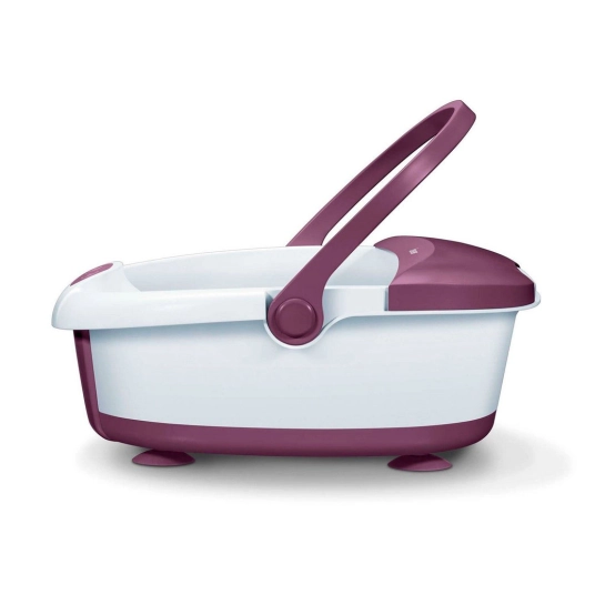 Гидромассажная ванна для ног с тремя насадками для педикюра. Приятный отдых для усталых ступней при помощи вибромассажа и вихревого массажа. Прибор поддерживает температуру воды, есть отверстие для слива.