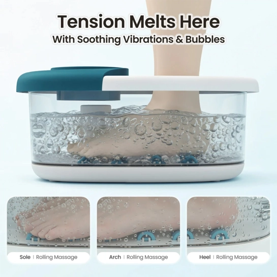 16 съемных роликов в сочетании с успокаивающими пузырьковыми струями обеспечивают теплый массаж, подобный спа-процедурам, который снимает усталость, облегчает боль в ногах и улучшает кровообращение.