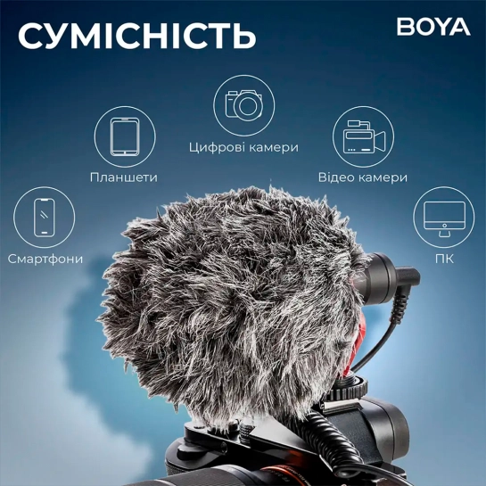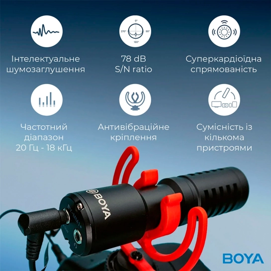BOYA BY-MM1+ — это усовершенствованный супер-кардиоидный конденсаторный микрофон, передающий высокочувствительное звучание с более низким уровнем шума на ваш смартфон, планшет, DSLR и видеокамеры, ПК и др.