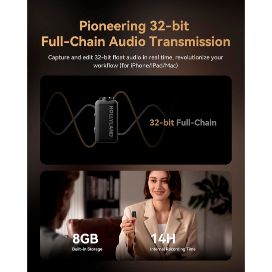 Hollyland Lark Max 2 Combo предназначена для высококачественной записи аудио во время съемок видеоблогов, подкастов, интервью, короткометражных фильмов, документальных проектов и прямых трансляций (стриминга), становясь универсальным решением для создателей контента.