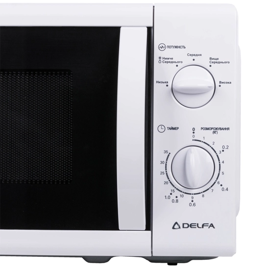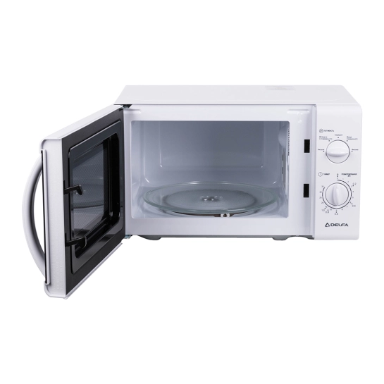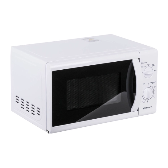 Используя Delfa MD202M, Вы сможете разогревать и готовить пищу, размораживать продукты. Мощность микроволн данной модели соответствует 700 Вт, при этом ее объем составляет 20 л. В ней установлено понятное механическое управление, воспользовавшись которым можно выбрать уровень мощности из 5 вариантов, функцию разморозки и установить таймер до 35 мин.