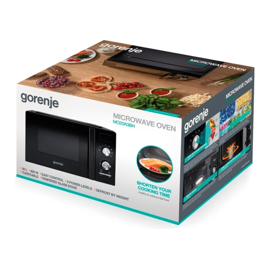 Микроволновая печь Gorenje MO 20 A 3 WH - Мощность микроволн 800 Вт. Это удобная модель для бытового применения, за счет компактных габаритов печь не занимает много места на рабочей поверхности, можно устанавливать ее на верх холодильника. Корпус выполнен в изящном цвете и подойдет для современных кухонных интерьеров. Печь оборудована дисплеем с электронным управлением – в меню встроено несколько автоматических режимов. Удобно, экономично и функционально – можно быстро размораживать продукты, готовить или разогревать блюда на разных уровнях мощности. Покрытие внутренней камеры легко отмывается от жира с помощью автоматической очистки AquaClean.