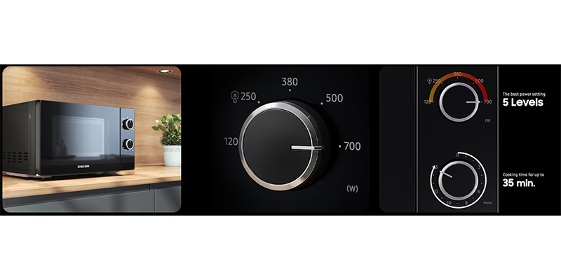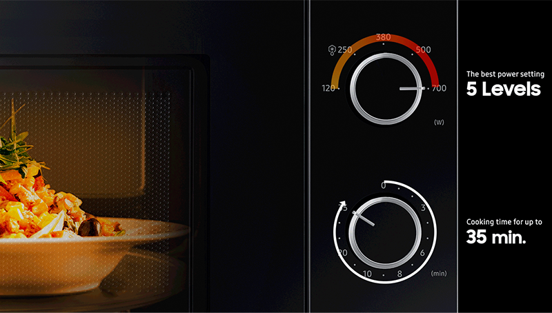 Управляйте приготовлением пищи гораздо быстрее и интуитивно. Простыми поворотами регуляторов можно выбрать оптимальную мощность 5 уровней и установить время приготовления до 35 минут. Таким образом вы можете использовать широкий спектр возможностей приготовления и готовить различные блюда с большей точностью.