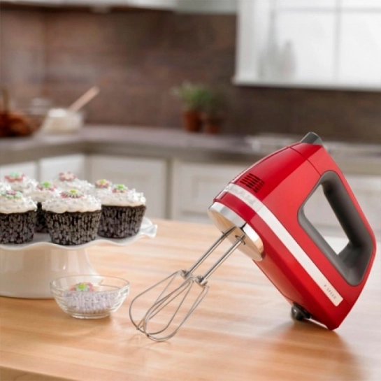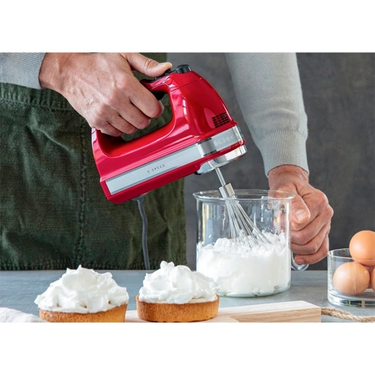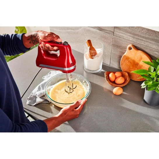 Мягкая ручка ручного миксера KitchenAid с 9 скоростями удобно лежит в руке, поэтому вы можете полностью контролировать процесс смешивания.