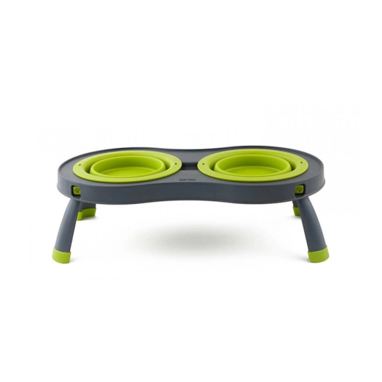 Подставка с двумя съемными складными мисками, идеально подходящая для кормления питомца как дома, так и в путешествии. Изготовлена в соответствии с требованиями FDA без содержания вредного бисфенола А.