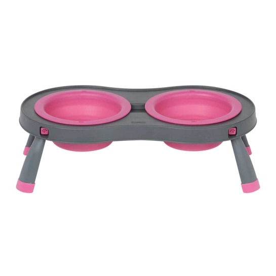 Подставка с двумя съемными складными мисками, идеально подходящая для кормления питомца как дома, так и в путешествии. Изготовлена в соответствии с требованиями FDA без содержания вредного бисфенола А.