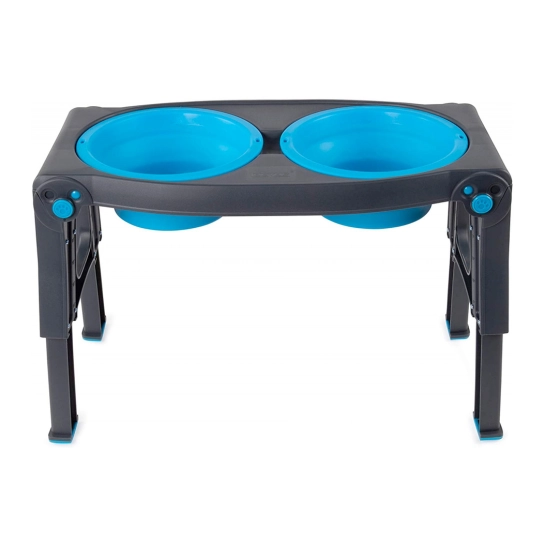 Описание Миска двойная DEXAS Pet Feeder с регулируемыми ножками 960 мл Голубая (PW1204322194)