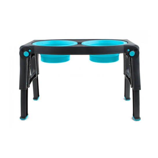 Регулируемая подставка с двумя съемными складными мисками для правильного кормления собак. Регулируемые ножки позволяют изменять высоту в зависимости от роста питомца. Изготовлена в соответствии с требованиями FDA без содержания вредного бисфенола А.