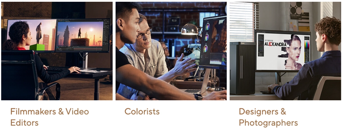 Монитор идеально подходит для режиссёров, монтажёров, колористов и фотографов. Он отображает цвета с высокой точностью, что позволяет выполнять работу без компромиссов в качестве изображения.