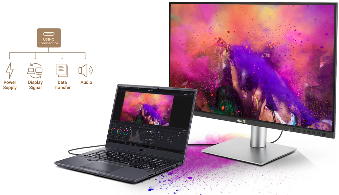 WQHD-дисплей с поддержкой HDR10 обеспечивает глубокий контраст, широкий динамический диапазон и яркие оттенки. Это делает изображение реалистичным — идеально для цветокоррекции и видеомонтажа.