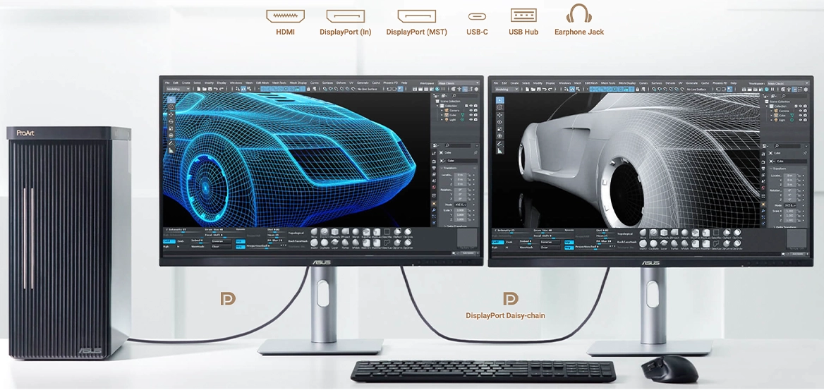 Поддержка технологии DisplayPort Daisy-chain позволяет подключать несколько мониторов в линию, создавая эффективную мультимониторную систему для сложных проектов.