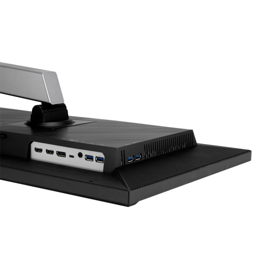 Монитор оснащён портами USB-C, HDMI, DisplayPort, встроенным USB-хабом и аудиоразъёмом. Порт USB-C поддерживает подачу питания до 65 Вт, что позволяет подключать и заряжать ноутбук одним кабелем.