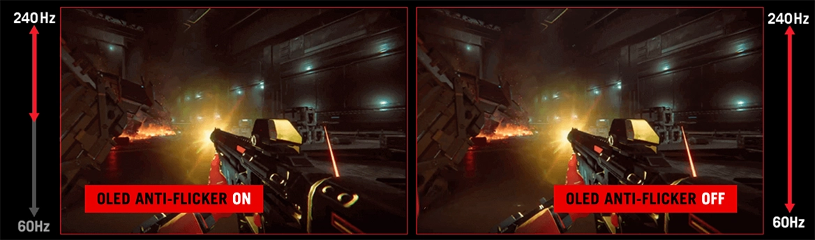 Для снижения мерцания при низких частотах обновления используется фирменная технология OLED Anti-Flicker. Она повышает комфорт глаз и делает изображение более стабильным при просмотре фильмов или продолжительных игровых марафонах.