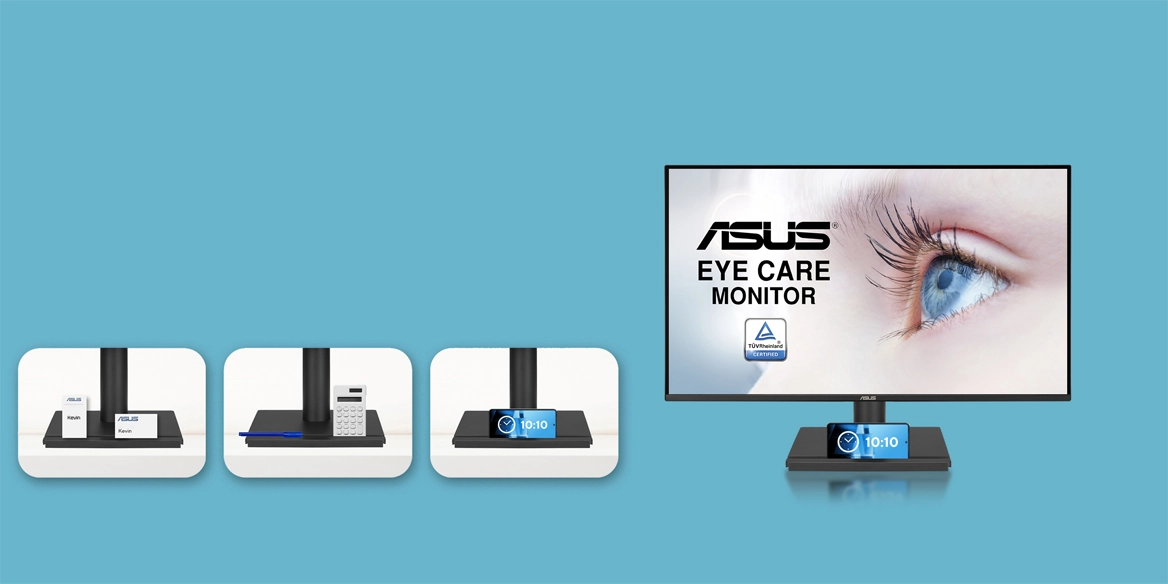 Подставка монитора имеет плоское и устойчивое основание, на котором удобно размещать смартфон, канцелярские принадлежности или другие мелочи. Такой дизайн создаёт аккуратное и функциональное рабочее пространство, идеально подходящее как для офиса, так и для дома.
