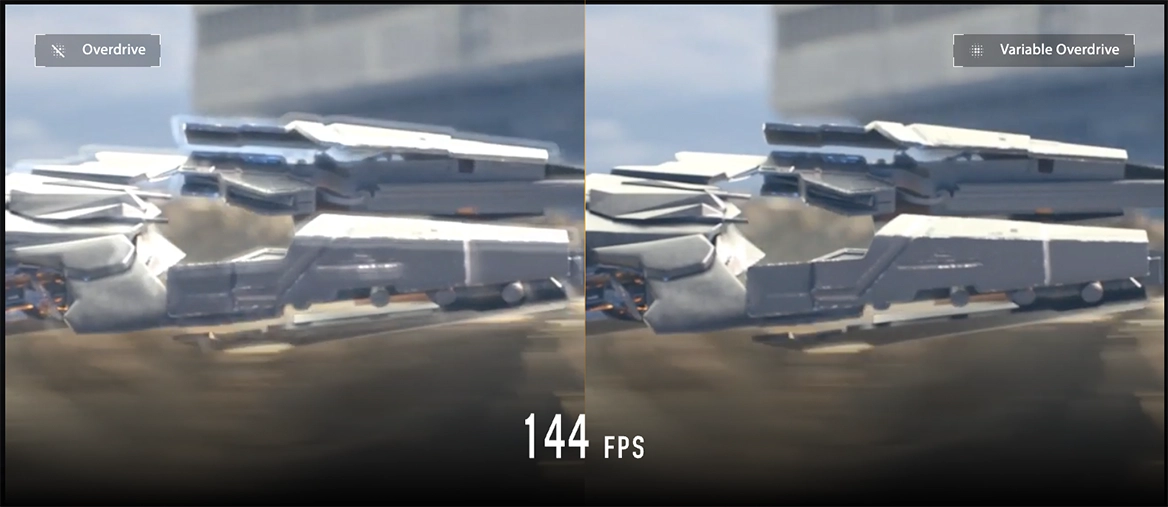 Функция Variable Overdrive динамически регулирует уровень ускорения пикселей в зависимости от частоты кадров. Результат — минимальные шлейфы, естественные переходы и стабильное изображение при любой скорости игры.